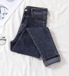 牛仔裤韩国女式高腰全配修身L弹力新镶边铅笔女式牛仔裤潮流