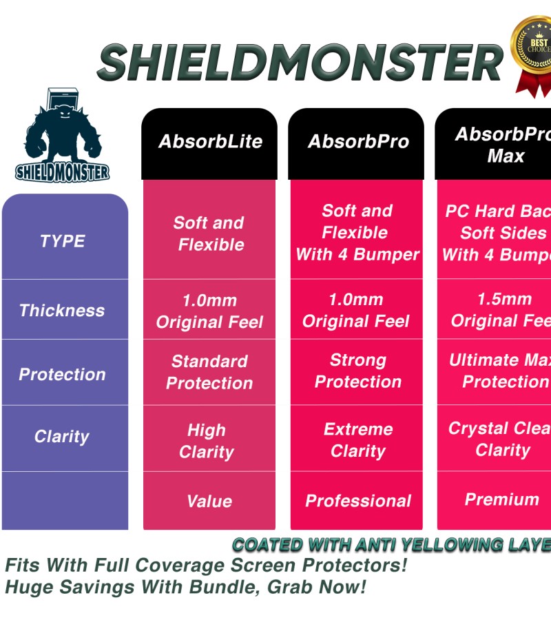 Shieldmonster iPhone手机壳14 Pro Max/14 Pro/14 Max/13 Pro Max/12/11/XS/X/8外壳透明硬软透明TPU盖