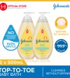 Johnson's® Top-To-Toe™ hair & body baby bath gently cleanses delicate newborn skin and as mild as pure water. Newborn skin both absorbs and loses moisture faster than adult skin so it needs superior moisturizationBenefits of productGently cleanses delicate newborn skinBenefits of Ingredientscontains naturally-derived ingredientsHow-to-UseRemove seal to open. Wet body, gently lather & rinse.