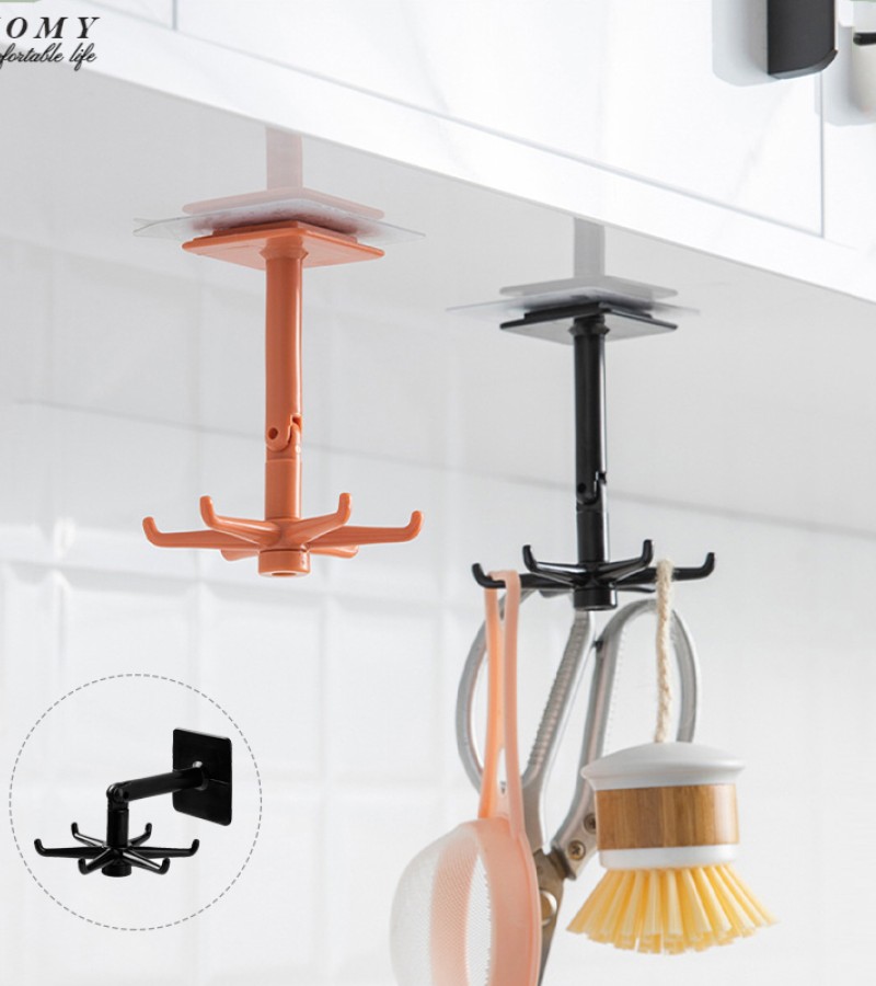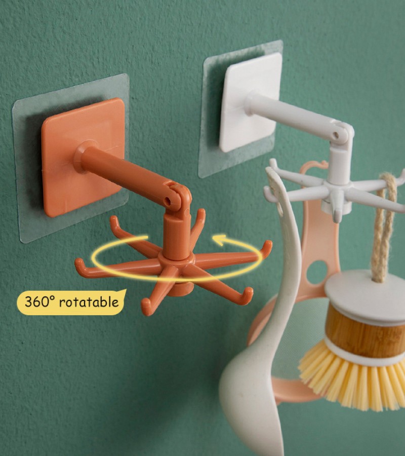 Homy 360°可旋转6钩衣架厨房小钩壁挂式挂钩自吸式厨房浴室挂钩架可调节多功能厨房挂钩