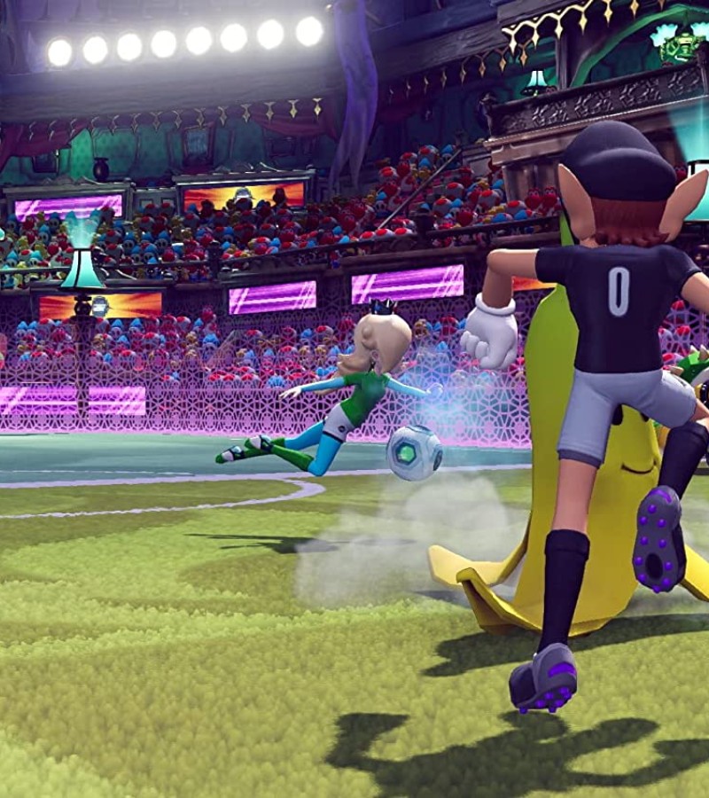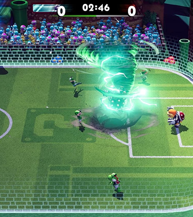 Introducing Strike, a 5-on-5, soccer-like sport with no rules—do whatever it takes to win! Get gritty and try to score the most goals by tackling enemies, using items, and pulling off score-boosting Hyper Strikes. Super Mario series mainstays like Peach, Toad, and Yoshi put their cleats (and stats) to the pitch and will stop at nothing to score. Customize your characters with gear that can augment their stats and appearance. Take the carnage online* or pass the ball to players locally**—just look out for the electric fence.