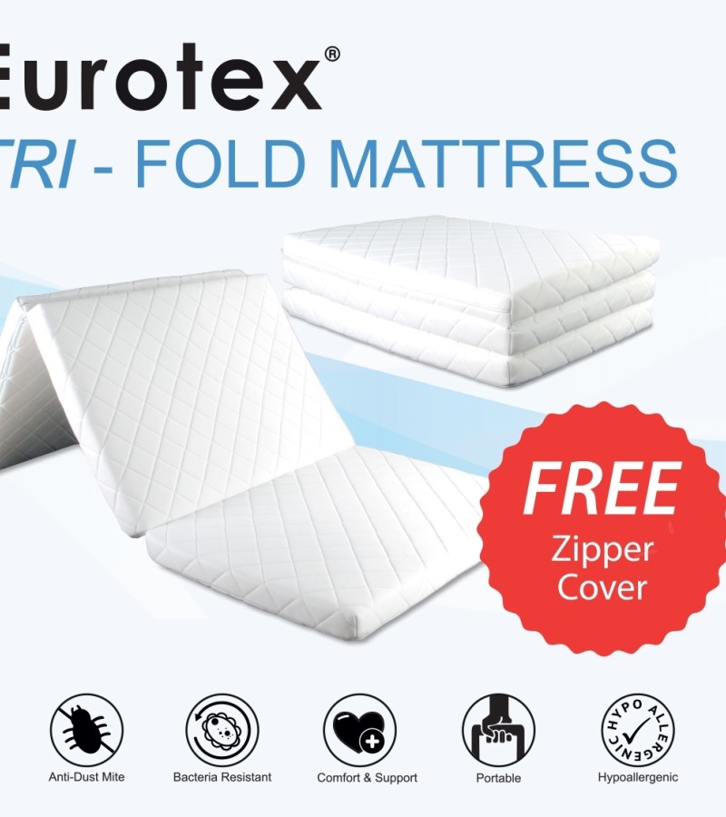 Eurotex,可折叠3折泡沫床垫,防尘螨洗拉链套,6cm/10cm厚,免费棉质拉链床垫套